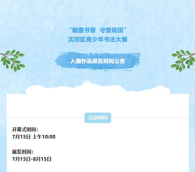 “翰墨书香、守望砚田” 沈河区青少年书法大赛入围作品展览时间公告