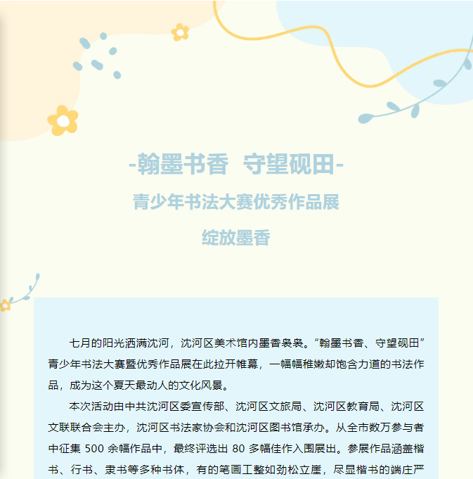 “翰墨书香、守望砚田” 青少年书法大赛优秀作品展绽放墨香