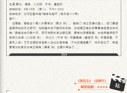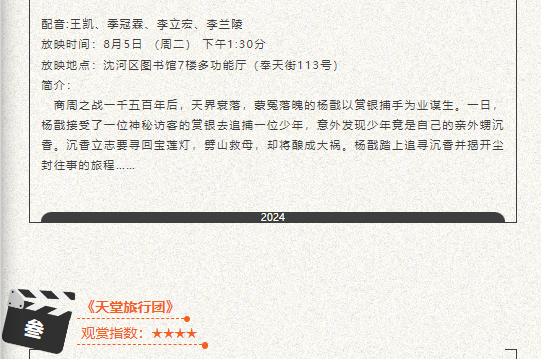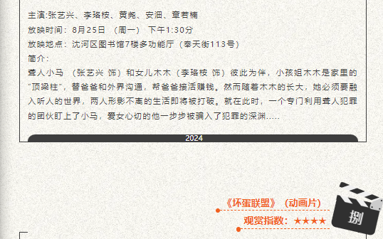 2025年8月暑假专场电影影讯——“光影筑梦,童心飞扬”农民工子弟观影活动月