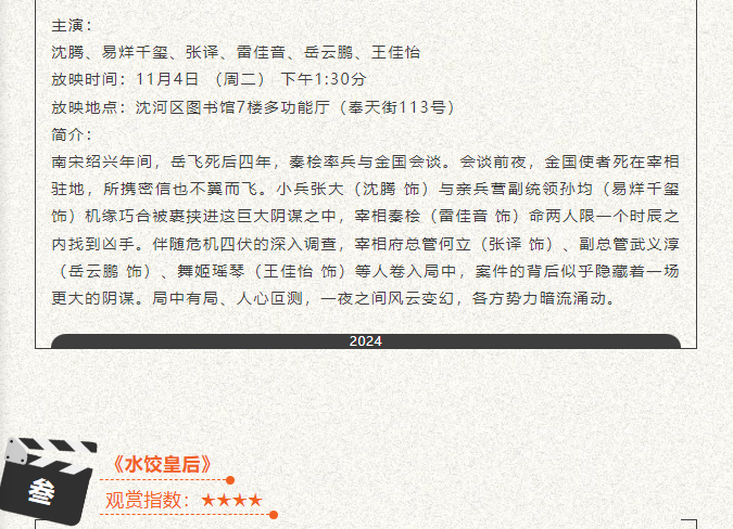 沈河区图书馆电影放映——2025年11月电影影讯