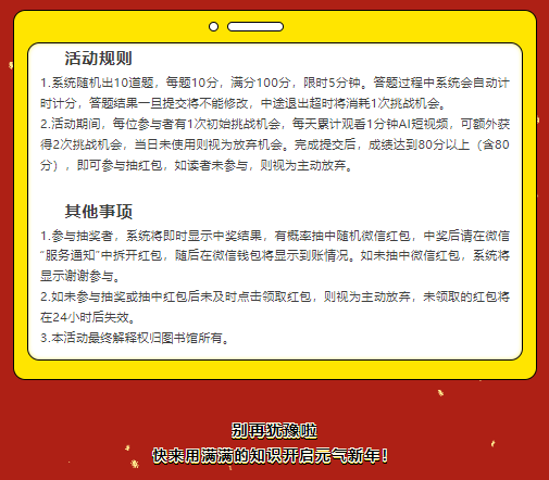 新年“脑”力全开!沈河区图书馆“‘元’来如此”线上知识挑战活动已上线 I 元旦线上赢红包活动
